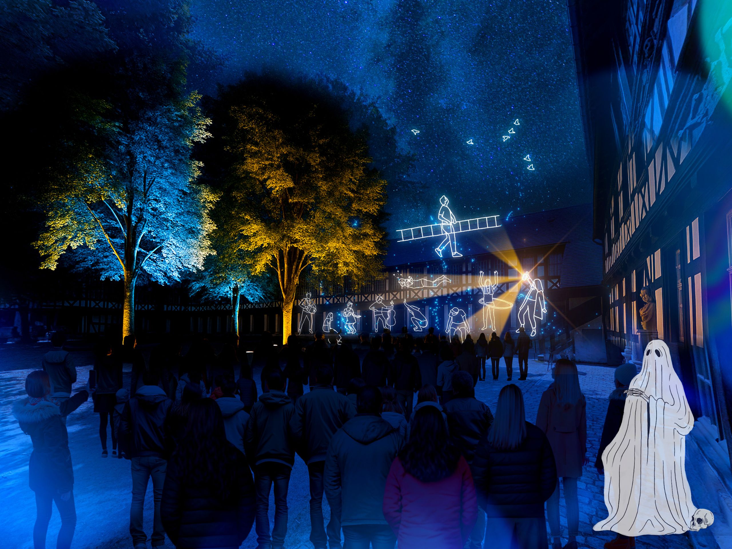 Fantomapping – Fêtes Macabres Projection lumineuse participative 25 octobre 2025 > 2 novembre 2025 Cour de l'Aître